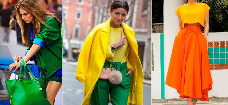 Si quieres arriesgarte con los contrastes, esta armonía es bastante segura y sencilla de lograr ya que solo usas dos colores que se ubican uno frente al otro en el círculo cromático. Esta combinación te proporciona resultados muy llamativos que seguro atraerán la mirada de todos y no te arriesgas demasiado. Si te parece demasiado fuerte puedes usar un tono apagado de alguno de los dos colores, eso baja un poco la intensidad de tu look.